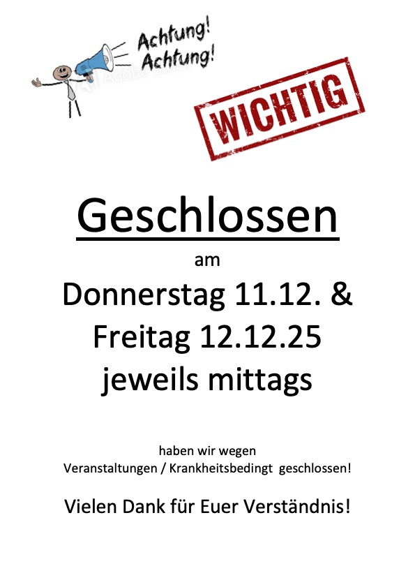 Hallo liebe Besucher unserer Web Seite, hier habt Ihr unsere Aktuellen Essenspläne und Aktuellen Hinweise ( Öffnungszeiten, Aktionen usw. ) Ruf uns gerne jeder Zeit an oder kommt vorbei und sprecht mit uns. Die Mittagstischpläne könnt Ihr hinter dem Button Mittagstischplan finden. Wir freuen uns 🙂 .