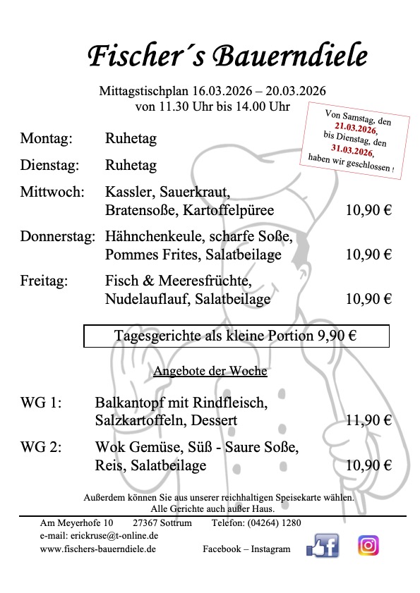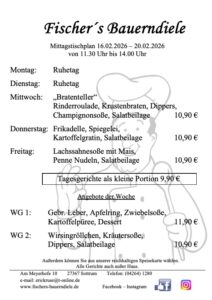 Hier können Sie sich die Mittagstischpläne für die kommenden Wochen anschauen.